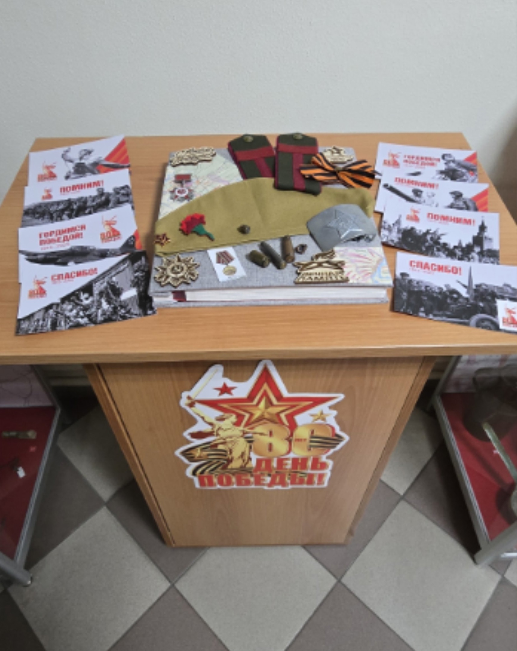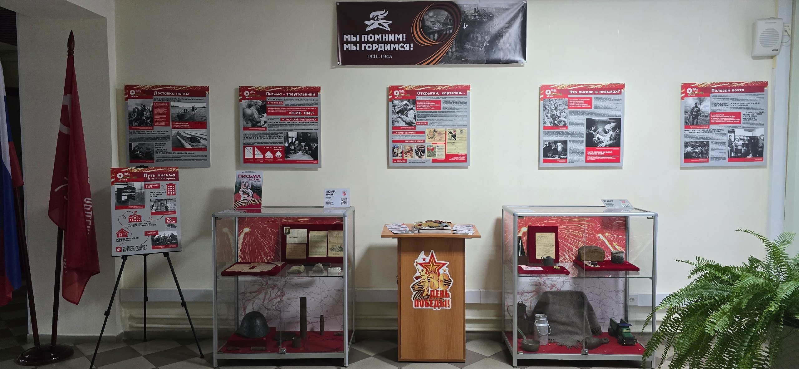 Ноябрьским городским судом проведены подготовительные мероприятия к 80-летию празднования Дня Победы! Холл здания суда украшен баннером, организована выставка детских рисунков, а также, при содействии Музейного Центра города Ноябрьска, организована выставка "Письма войны". Открытие выставки состоялось 22 апреля 2025 года.